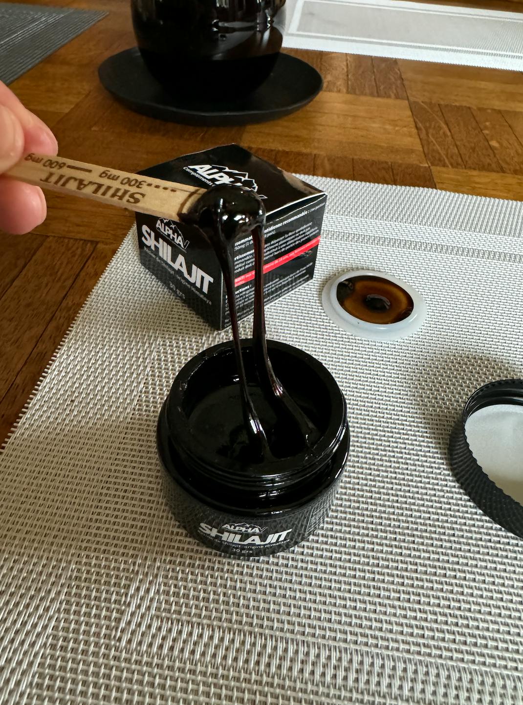 Utiliser la tige doseuse incluse dans la boîte de Shilajit et prendre 2 fois 250 mg par jour, dilué dans une boisson chaude de votre choix, soit directement sous la langue pour une absorption rapide.